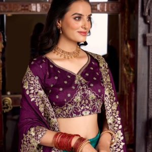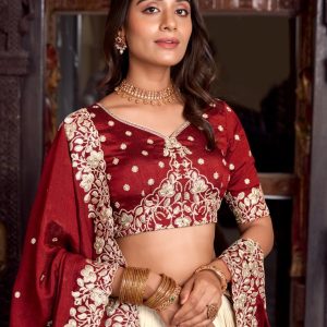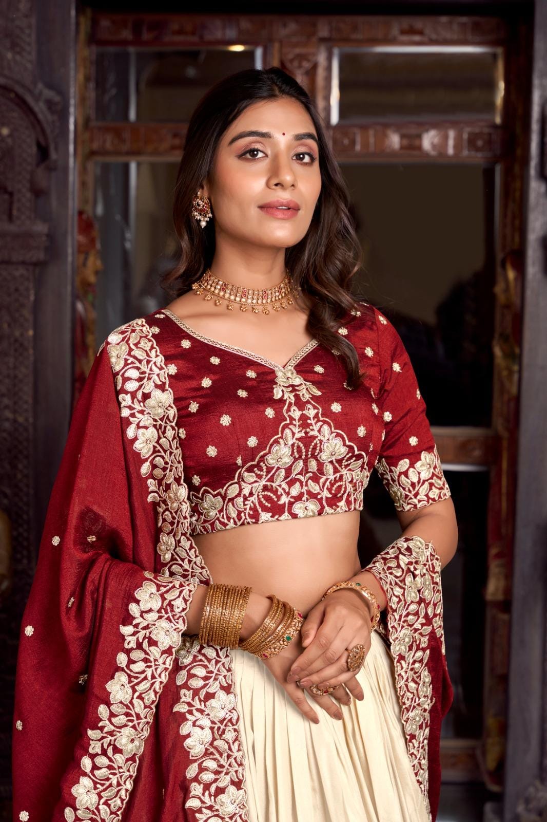 Elegant Tussar Silk Lehenga with Embroidered Vichitra Silk Dupatta & Blouse