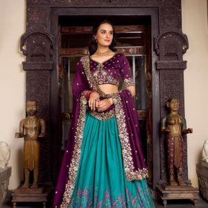 Step into timeless elegance with this beautifully stitched Tussar Silk lehenga featuring foil print work, paired with an unstitched embroidered Vichitra Silk blouse and dupatta — the perfect ethnic ensemble for festive and wedding occasions.